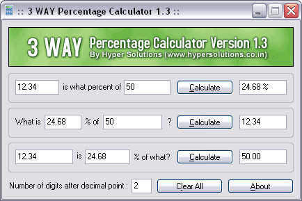 | Description: | A nice freeware which Calculates the value in 3 ways. You can also set the number of digits after decimal point. | ||